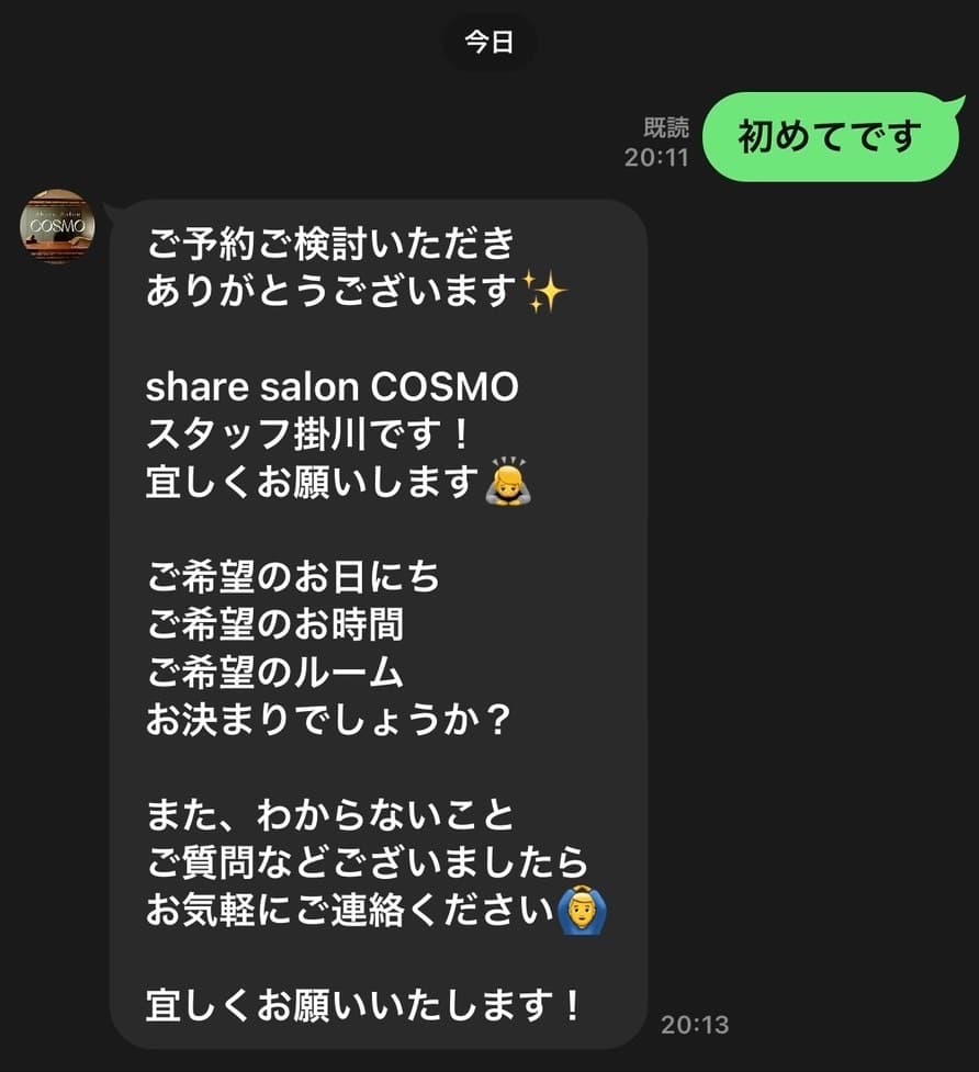 ShareSalonCOSMO公式ラインもしくはTELよりご連絡いただけます。